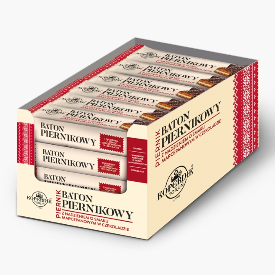 Răsfață-ți simțurile cu Batonul Kopernik, o delicioasă turtă dulce moale și aromată, completată de o umplutură fină cu gust de marțipan și acoperită cu un strat generos de ciocolată neagră.