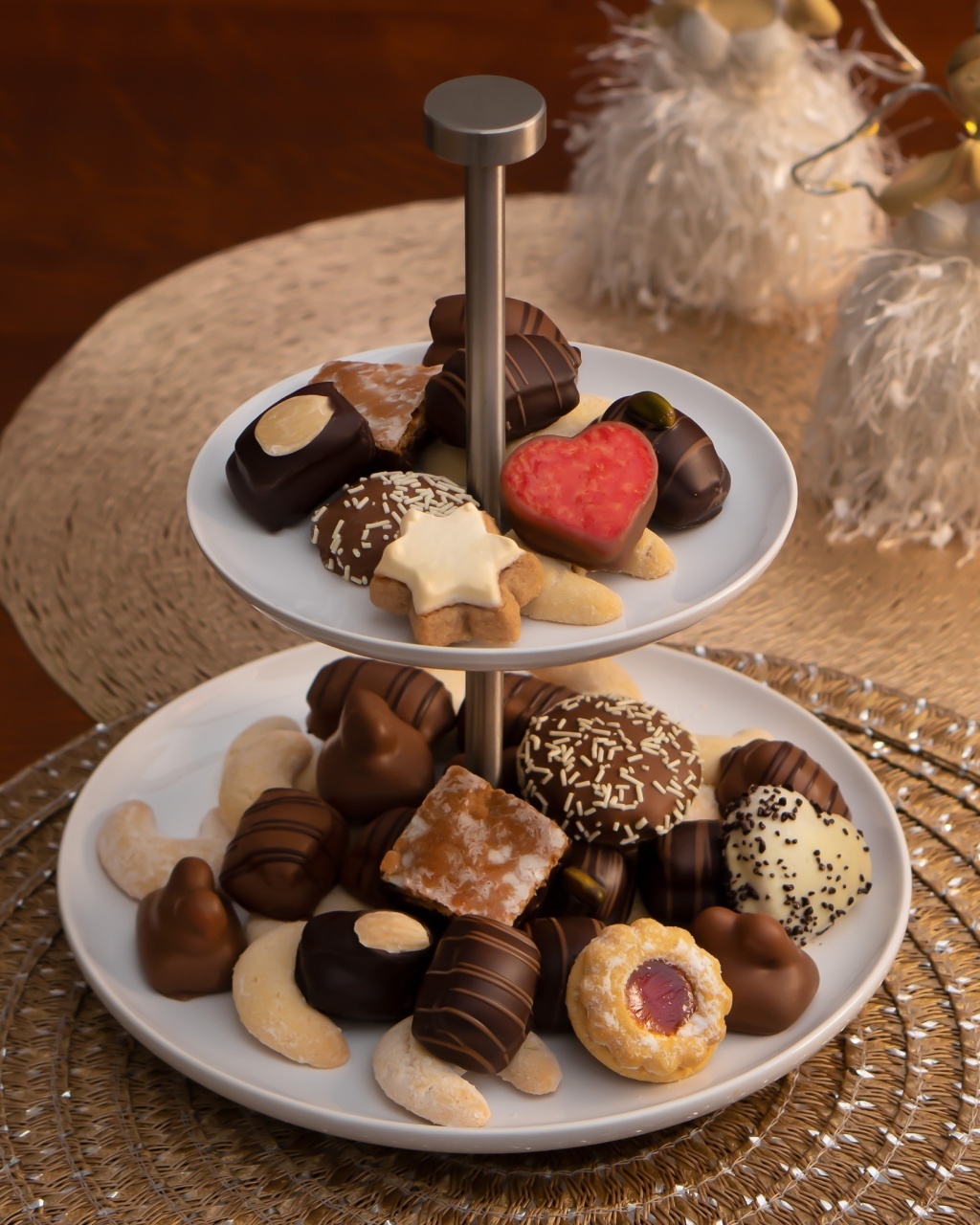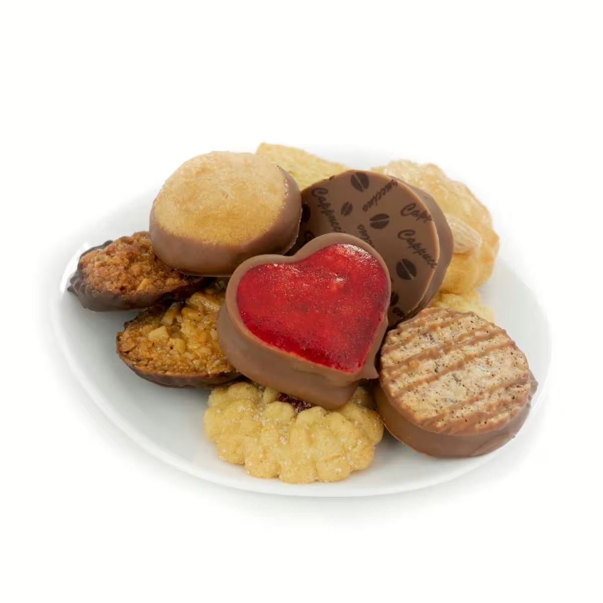 Selecția include sortimente delicioase precum Florentiner, Sweethearts cu nougat, Spritzgebäck cu zahăr, biscuiți cu migdale, bezea de nuci și multe altele — fiecare aducând o notă unică de savoare și textură.