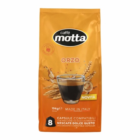 Capsule Caffè Motta Orzo, bautura din orz fara cofeina, compatibile Dolce Gusto, 8 capsule, gust delicat, produs in Italia.