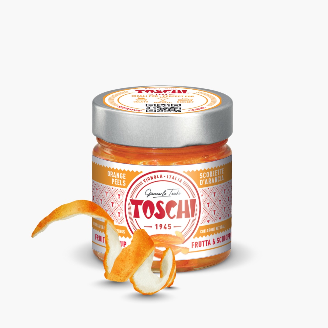 Felii de coajă de portocală confiată și sirop, Toschi - 310g