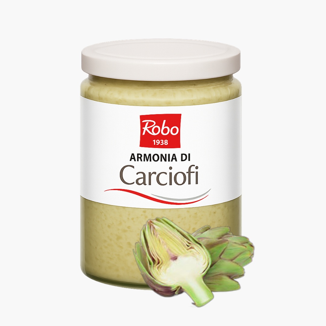 Armonia di Carciofi Robo este o cremă fină de anghinare, preparată din anghinare proaspătă atent selecționată și procesată pentru a păstra aroma autentică și textura naturală. Gustul său delicat, ușor dulceag, face din această cremă un ingredient versatil și rafinat pentru multiple aplicații gastronomice.