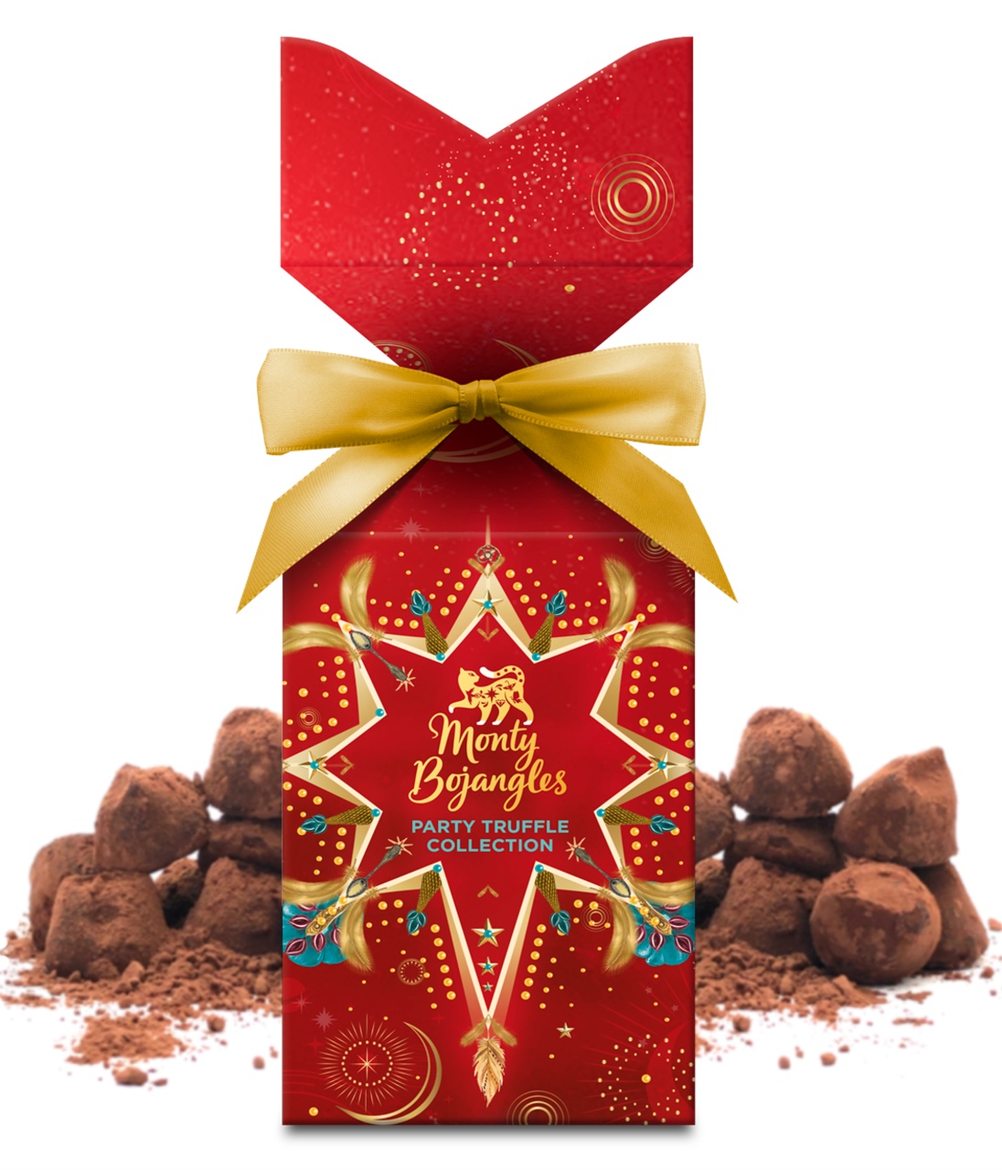 Trufele Monty Bojangles Party Truffle Collection 130 g aduc bucuria ciocolatei premium într-o prezentare spectaculoasă, perfectă pentru sărbători și cadouri gourmet.
