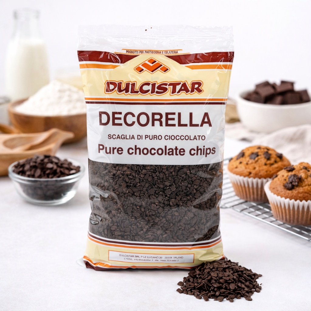 Dulcistar Decorella sunt fulgi din ciocolată pură, special concepuți pentru utilizare profesională în cofetării, patiserii, gelaterii și unități de panificație dulce. Realizați din ciocolată de calitate superioară, acești fulgi oferă gust intens de cacao, textură uniformă și topire controlată, fiind ideali atât pentru decor, cât și pentru încorporare în rețete.