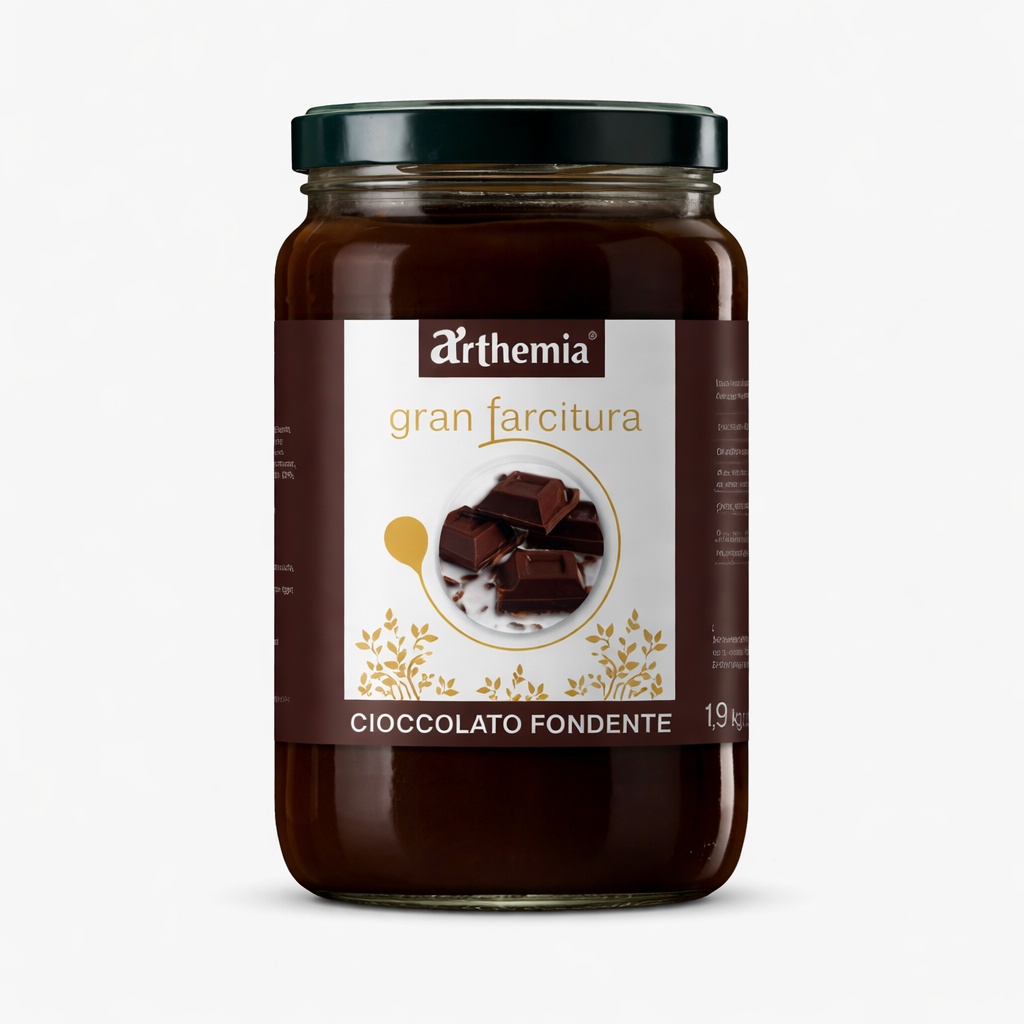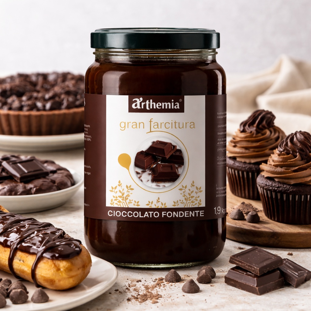 Arthemia Gran Farcitura Cioccolato Fondente – 1,9 kg este o umplutură profesională cu ciocolată neagră, creată pentru laboratoare de cofetărie, patiserii și unități HoReCa care caută gust intens, textură cremoasă și performanță constantă în producție.