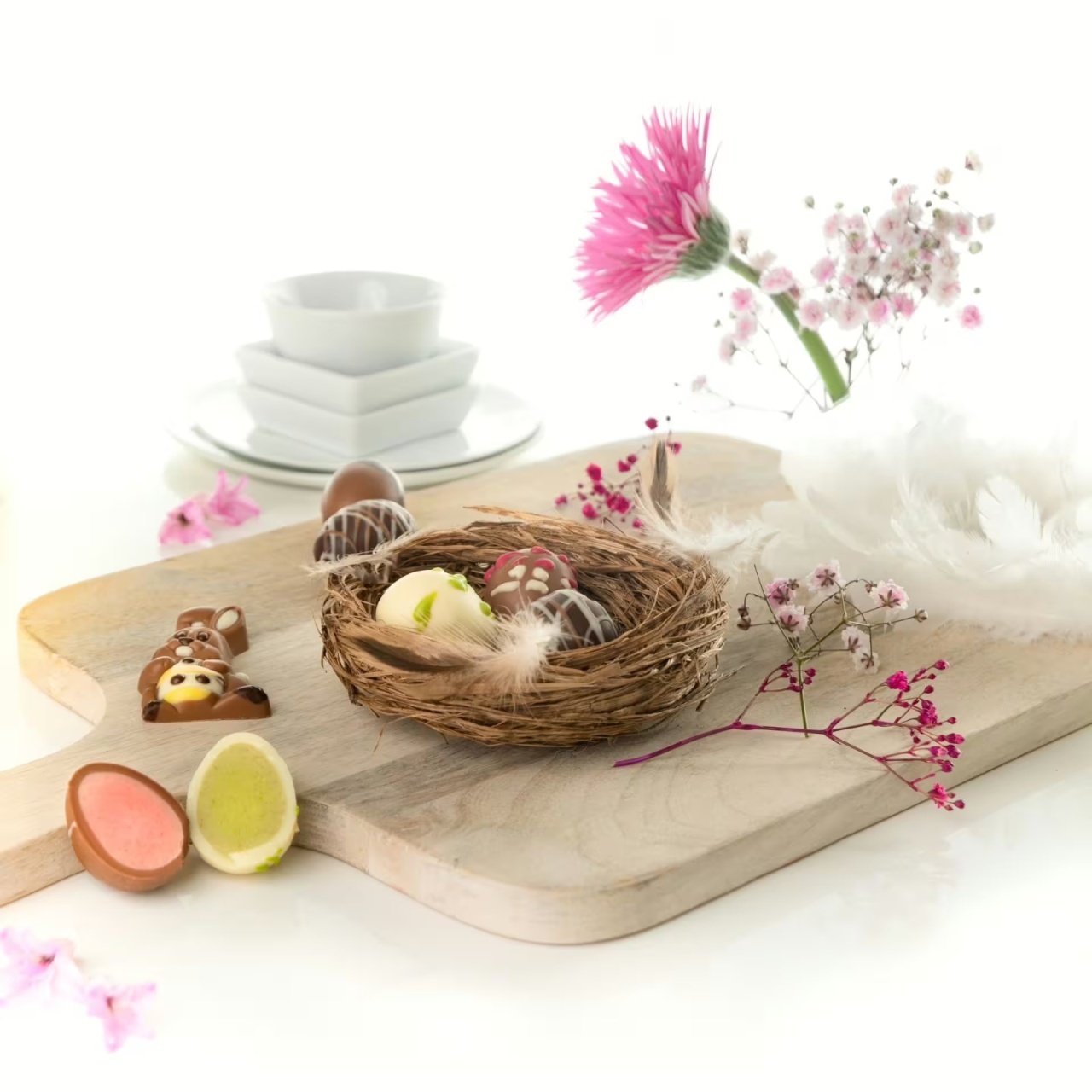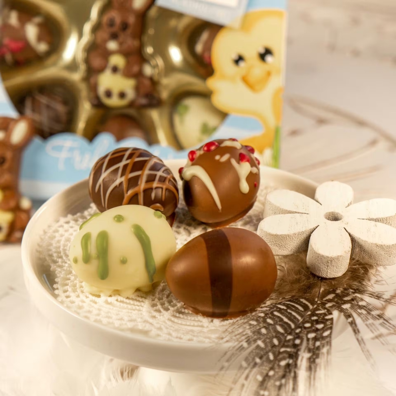 Transformă sărbătorile de Paște într-un moment cu adevărat special cu selecția exclusivă de praline Peters! Cutia Mini oua de ciocolata conține un iepuraș de ciocolată delicios, înconjurat de mini ouă trufate decorate manual, în 8 sortimente rafinate.