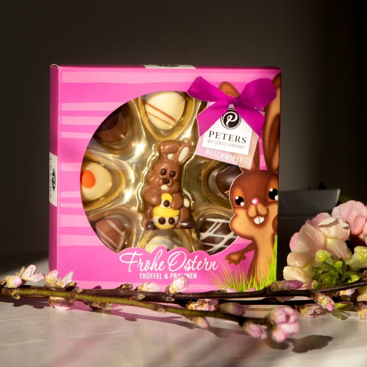 Transformă sărbătorile de Paște într-un moment cu adevărat special cu selecția exclusivă de praline Peters! Cutia Mini oua de ciocolata conține un iepuraș de ciocolată delicios, înconjurat de mini ouă trufate decorate manual, în 8 sortimente rafinate.