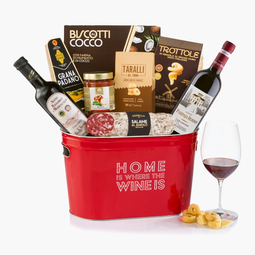 Descoperă rafinamentul gastronomiei italiene într-un cadou deosebit, ambalat într-un secchiello portaghiaccio metalic roșu inscripționat „Home is where the wine is”. Pachetul Spumantiera Chloe reunește vinuri, specialități gourmet și produse tradiționale de calitate superioară, oferind o experiență culinară completă.