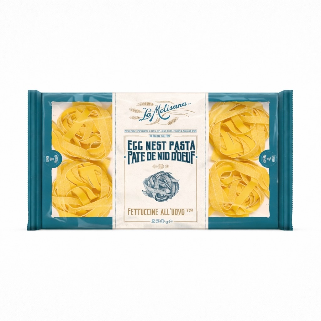 Fettuccinele cu ou se remarcă prin culoarea aurie și consistența lor fină, obținută din grâu dur de calitate și ou proaspăt. Forma lată și plată permite o aderență excelentă a sosurilor, oferind preparate cremoase și echilibrate.