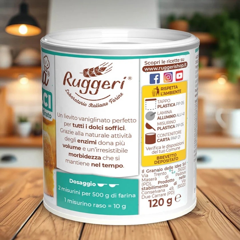 Migliora® Dolci – Lievito Vaniglinato Ruggeri 120 g este un agent de creștere vanilat special conceput pentru toate tipurile de deserturi pufoase. Datorită enzimelor naturale, oferă o dospire perfectă, un volum mai mare și o textură moale și aerată, care se menține în timp. Ideal pentru prăjituri, checuri, brioșe și alte deserturi de casă.