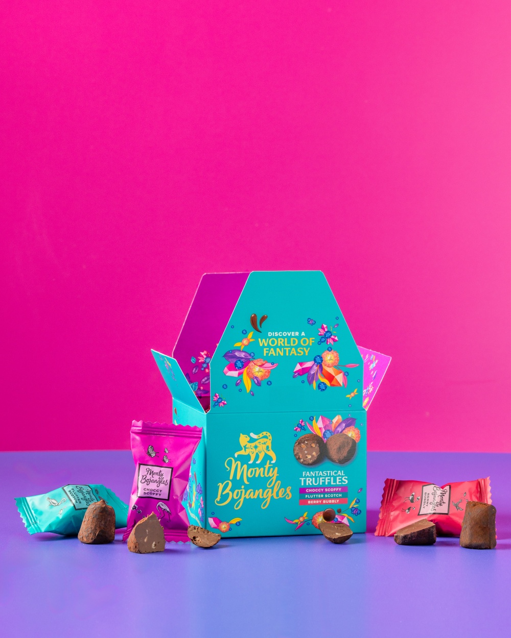 Răsfaţă-te cu adevăratul spectacol al gustului: Monty Bojangles Fantastical Truffles adună într-o singură cutie mai multe sortimente premiate de trufe pudrate cu cacao, fiecare cu personalitate şi identitate proprie. Brandul britanic Monty Bojangles este recunoscut pentru ciocolata de lux, designul creativ şi experienţa de degustaţie completă.